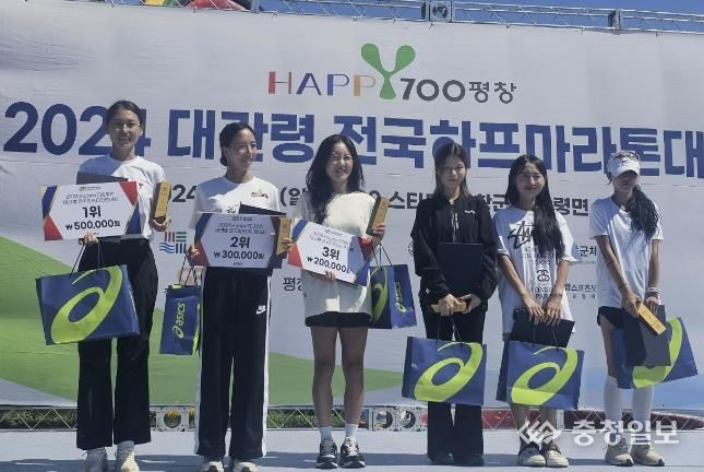 충청일보 김문호 기자 | 제천시청 육상팀이 지난 18일 강원도 평창군 평창올림픽기념관 인근에서 열린'2024 HAPPY700평창 대관령 전국하프마라톤대회'에 참가해 개인전 여자일반부 1위(최경선), 단체전 여자일반부 2위, 단체전 남자일반부 3위를 수상했다.