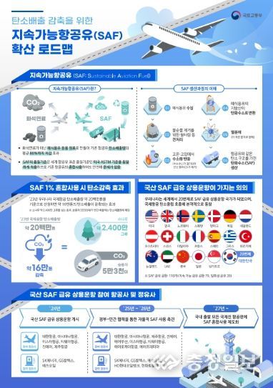 박상우 국토교통부 장관은 이날 정책 발표 현장에서 “기후위기 대응과 항공산업의 지속가능한 성장을 위해 국제항공 탄소감축의 핵심수단인 지속가능항공유(SAF) 사용은 더 이상 선택이 아닌 필수”임을 강조하면서, “금번 정책발표와 국산 SAF 급유 첫 상용운항을 시작으로 국제항공 탈탄소 정책을 적극 추진하여 우리나라가 항공분야 탄소중립 선도국가로서의 위상을 확립해 나가도록 노력할 것”이라고 밝혔다.