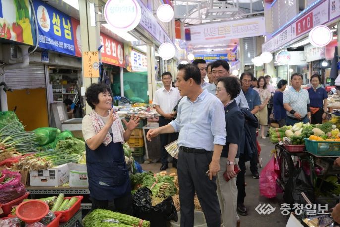 충청일보 박사현 기자 | 백성현 논산시장이 다가오는 추석 명절을 맞아 관내 전통시장 3개소를 방문해 상인과 시민을 만나며 소통하고 있다.