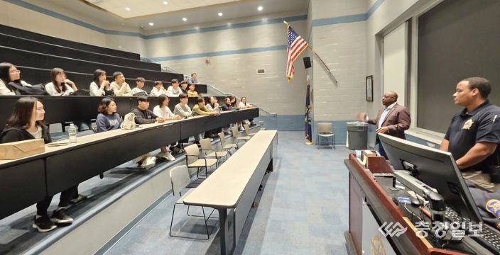 또한, 뉴욕 폴리스아카데미를 방문한 충남 방문단은 경찰학교 교육과정 소개와 경찰학교 프로그램 체험, 버건 카운티 보안관 특강 등 다양한 진로 체험 프로그램에 참여해 경찰학교 서장에게 직접 수료증을 수여받는 등 뜻깊은 시간을 가졌다.